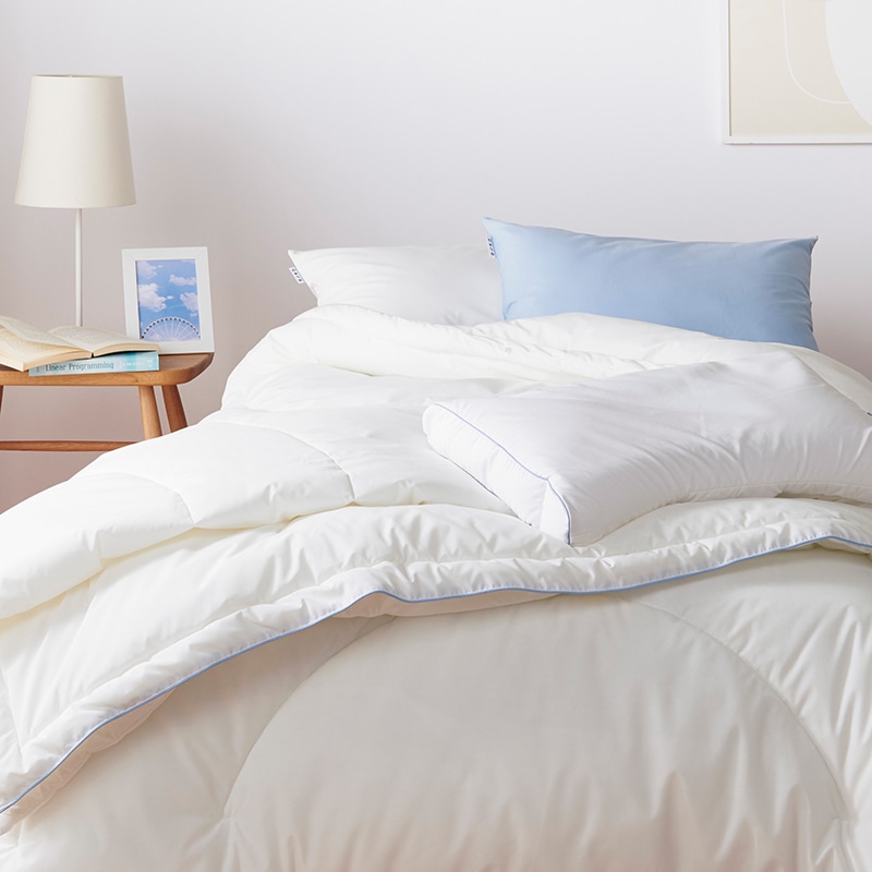 こだわりの「西川ダウン®」を使った掛け布団。保温性に優れあたたかく、吸湿・放湿性にも優れているためムレにくく快適に使用できます。