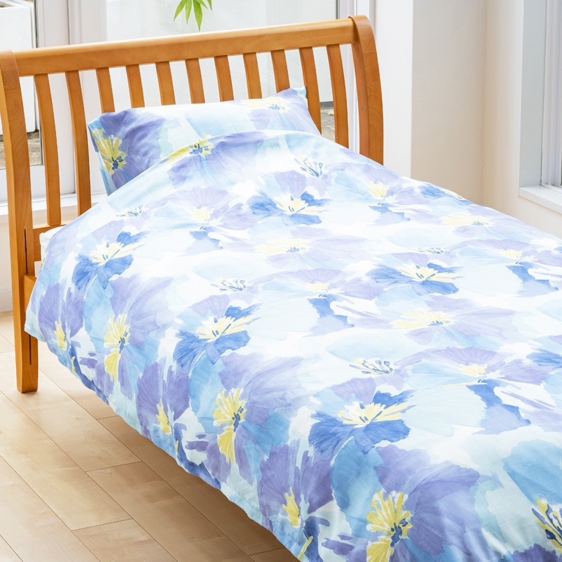 ファスナーが布団カバーの両サイドについているので、布団の出し入れが簡単!また、着脱便利なホック付きエステルテープが10か所についているので、カバーの中で布団がずれにくいです。