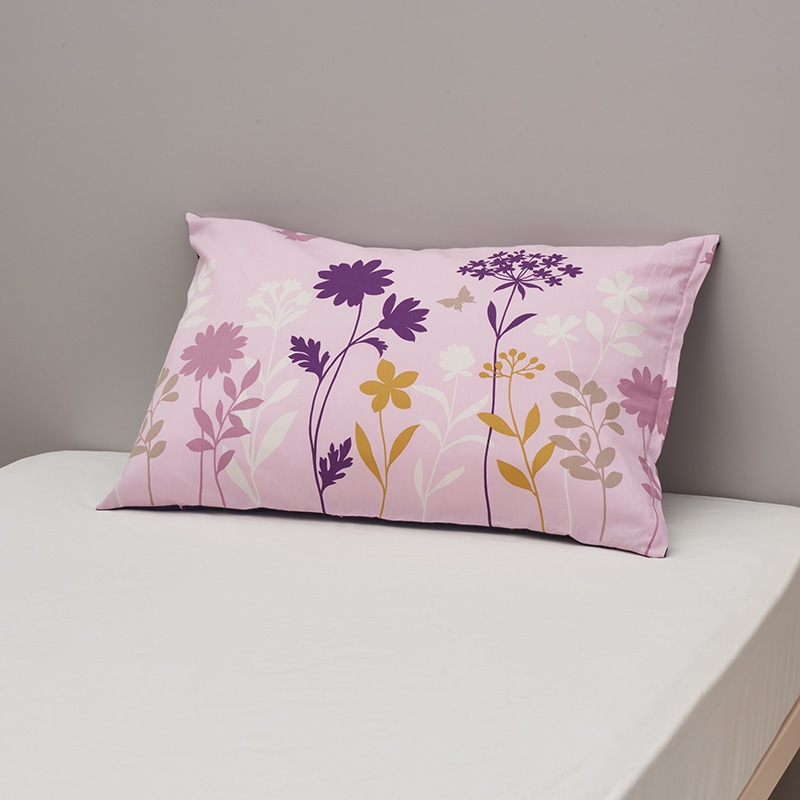 カジュアルなフラワーパターンのピローケース。綿100%の生地に抗菌加工を施しました。