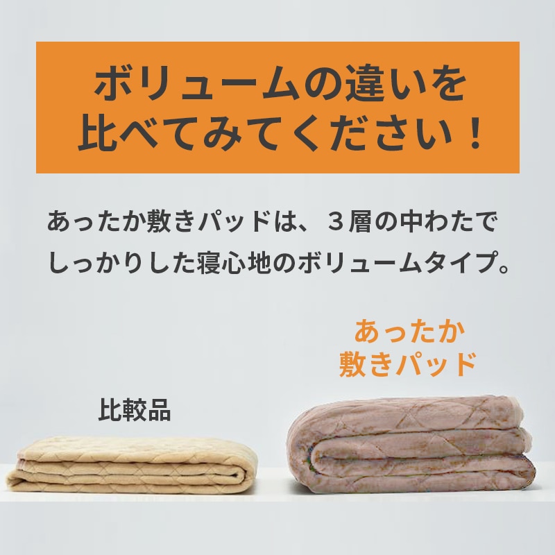 吸湿発熱わた、抗菌・蓄熱わた、ボリュームのある中空わたを重ねた3層の中わたを使用しています。 体温から生まれる熱や汗による湿気、空気中の水分を吸収することによって、ほんのり心地よいあたたかさを感じられます。【ふんわり包み込むような優しい肌ざわり】