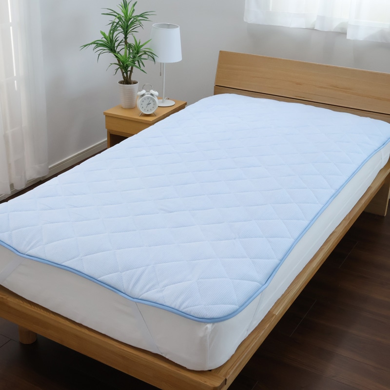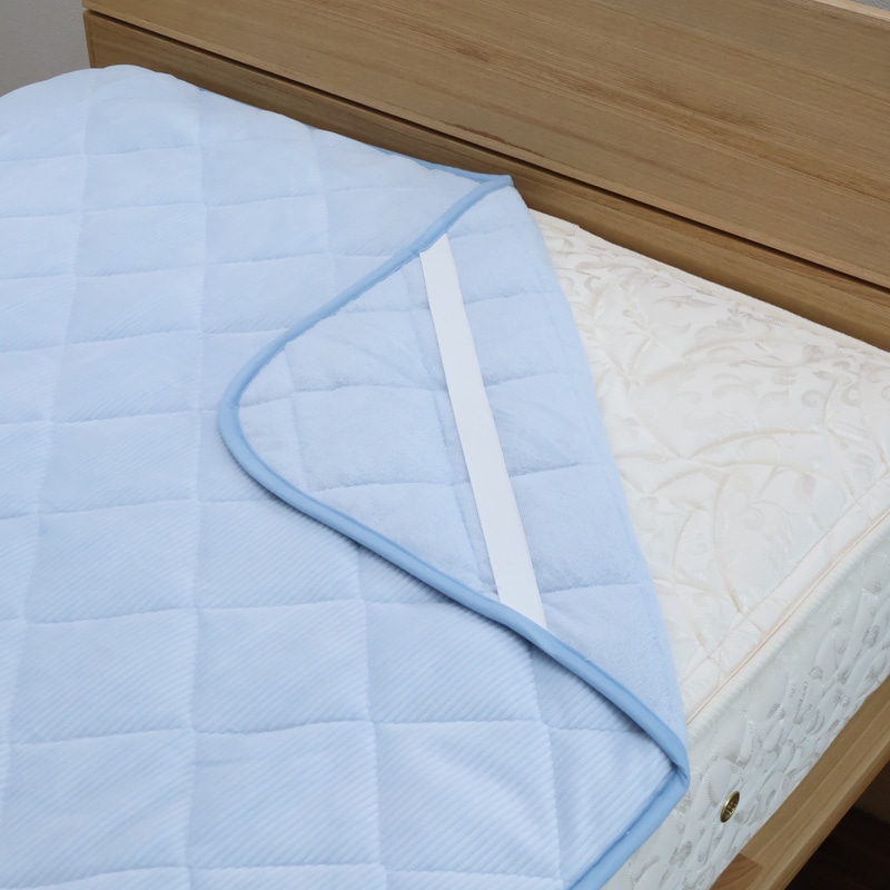 四隅のゴムで敷きふとんやベッドマットレスに固定できます