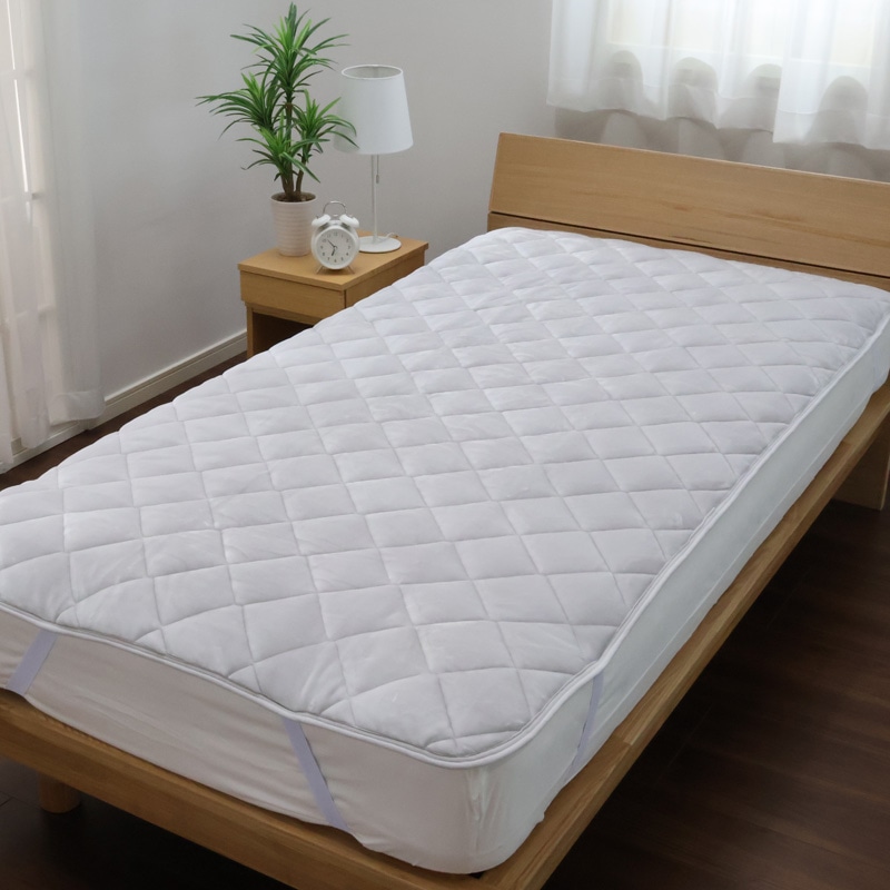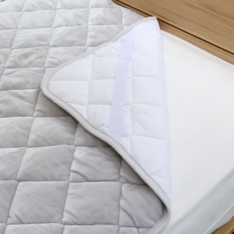 四隅にゴムバンド付きで、簡単に敷き布団やマットレスへの付け外しが出来ます。