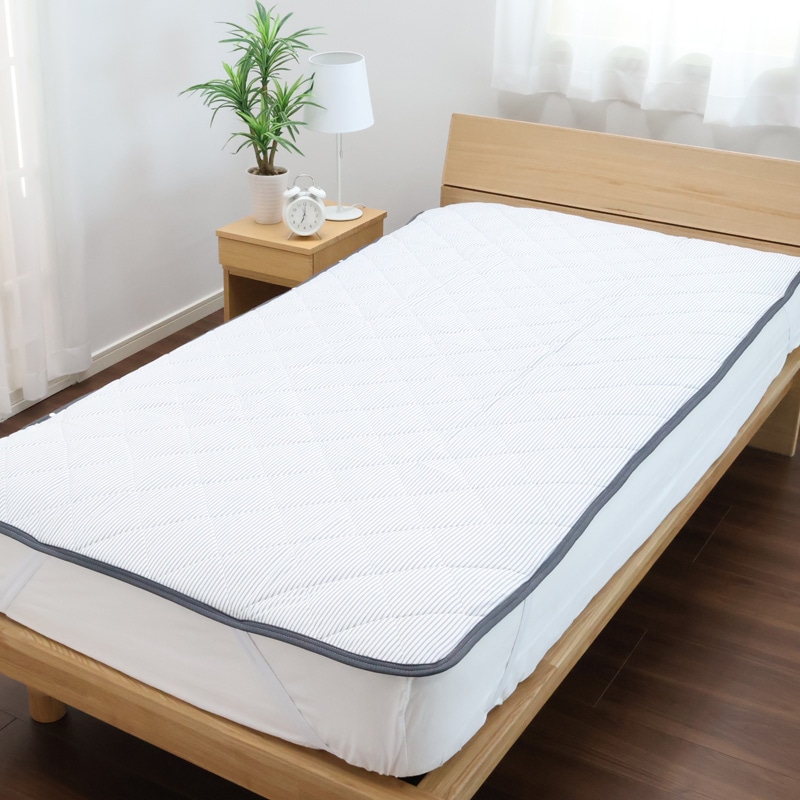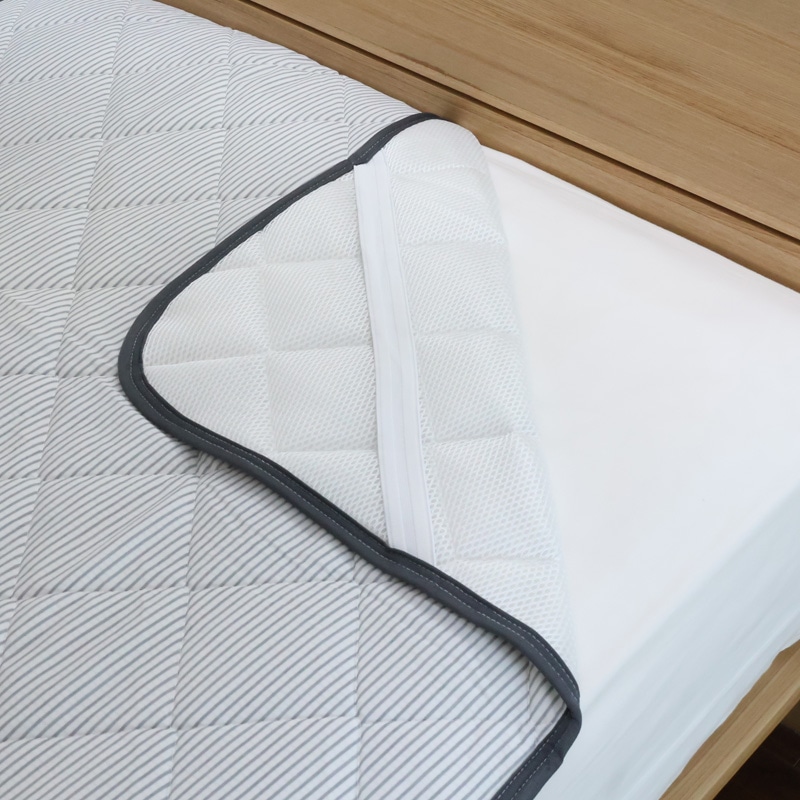 四隅にはゴムが付いているので、お手持ちのマットレスや敷布団に簡単装着。寝ている間もパッドがズレにくい。