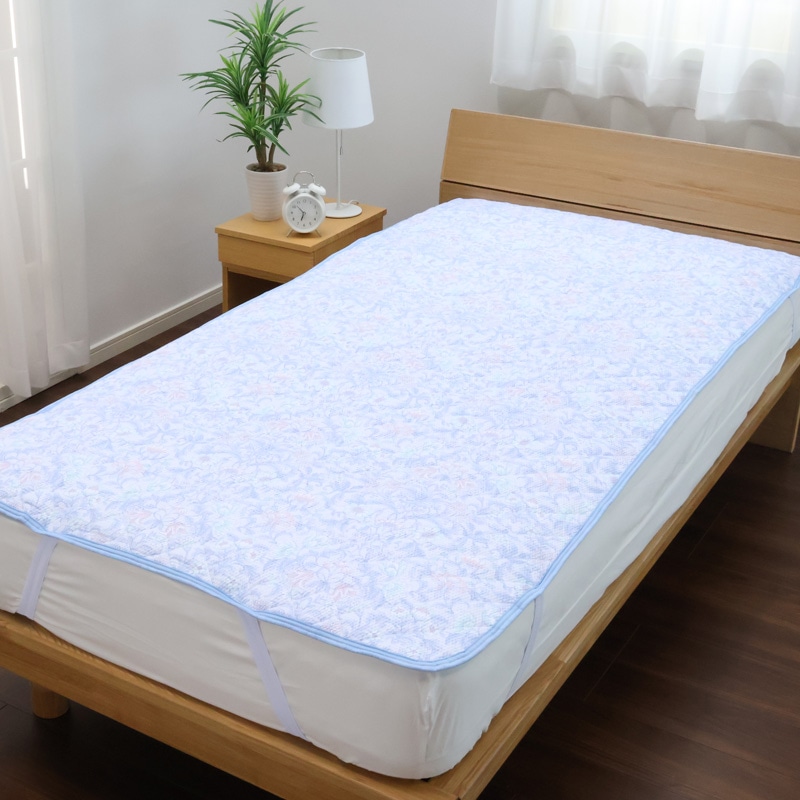 四隅にゴムバンド付きで、簡単に敷き布団やマットレスへの付け外しができます。