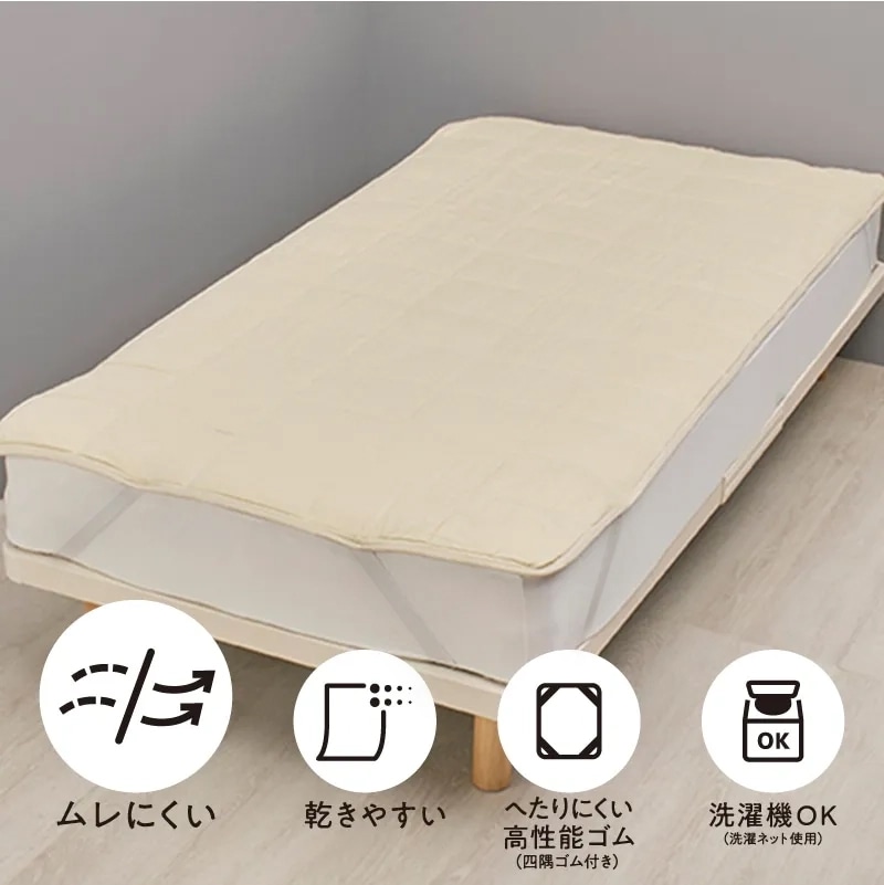 - 四隅高性能ゴム付き/生地:吸放湿、中わた:吸放湿