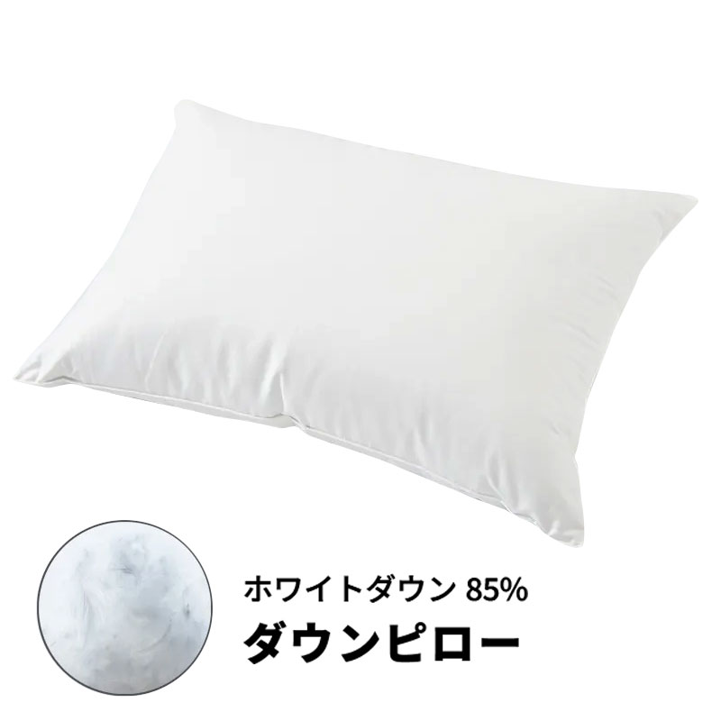 ホワイトダウン85%の羽毛を使用した、ふんわりやわらかなダウン入りの枕。