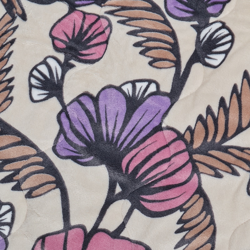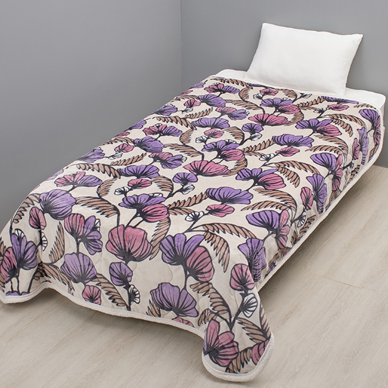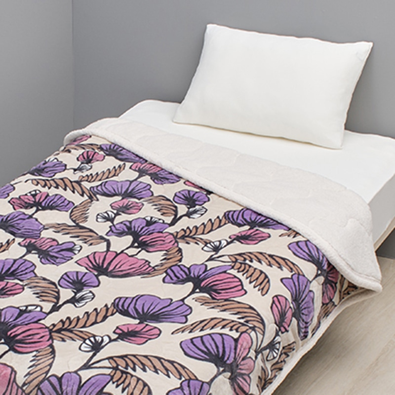 北欧らしい大胆なフラワーパターンが寝室を彩ります。【ボリュームのある合わせタイプのキルトケット】
