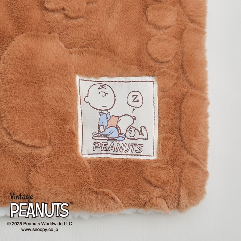 表面はスヌーピーの織り柄がかわいいジャカードフェイクファー生地を使用。