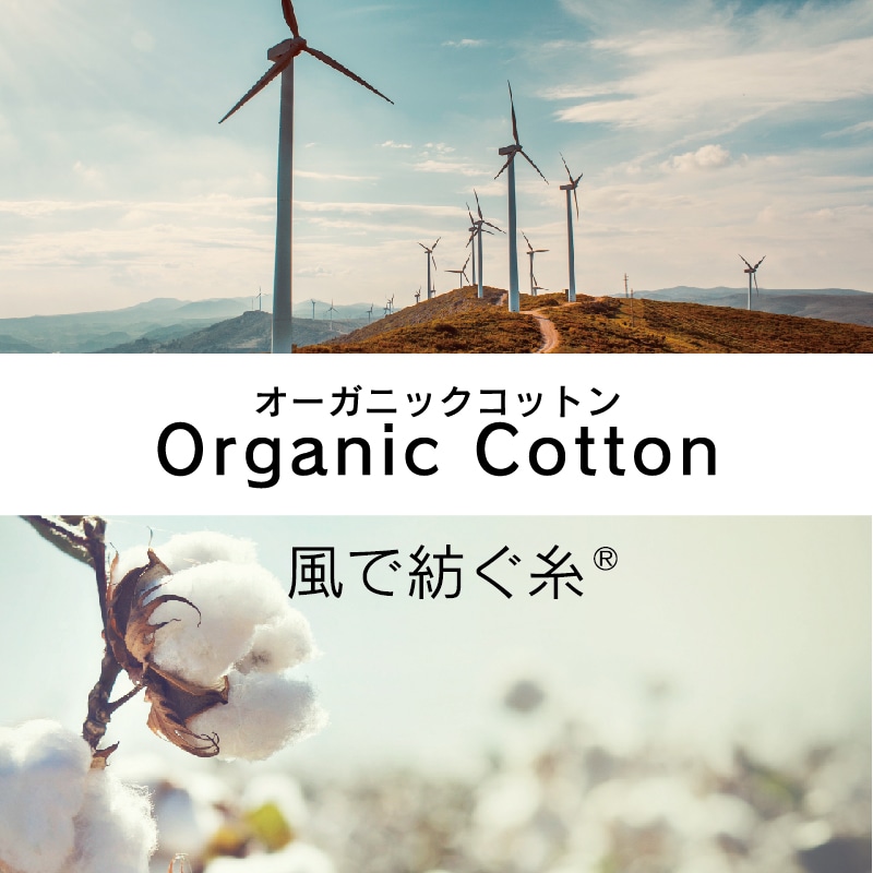 毛羽部分に「風で紡ぐ糸(インドオーガニックコットン)」を使用。