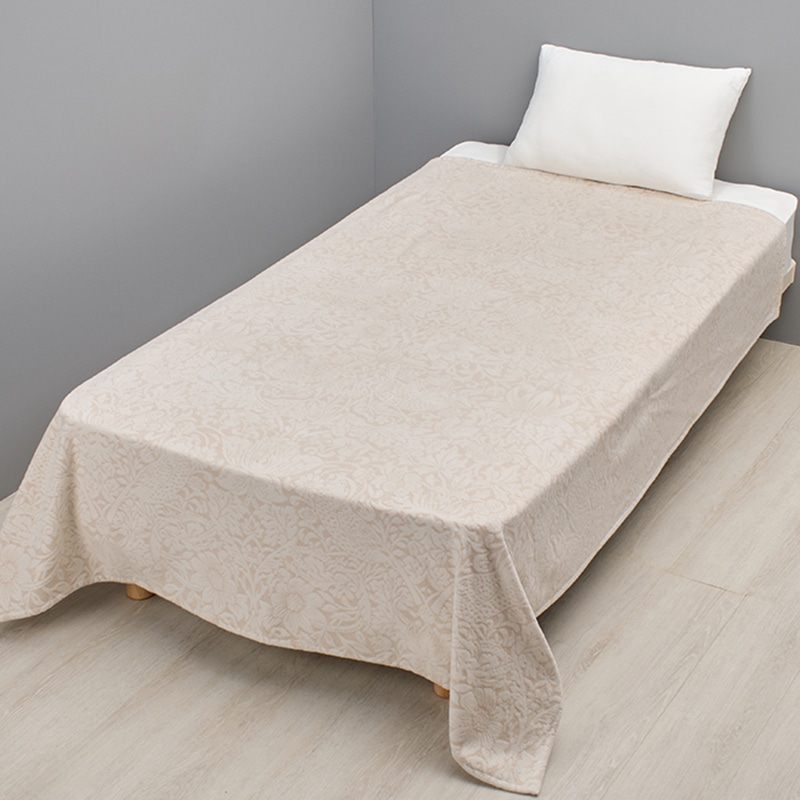ヨコ糸にアクリル50%を入れることで、もちもちした柔らかな風合いの毛布に仕立てました。