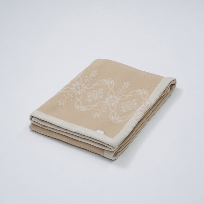 上品なオーナメント柄を織柄で表現した、贅沢なウール毛布です。【日本製(泉大津)】