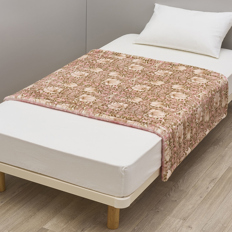 ピンパーネルとは、大きなチューリップの間に咲いている小さな花の名前です。1876年にウィリアム・モリスが木版の壁紙用にデザインしました。彼自身この入り組んだデザインを気に入り、ケルムスコット・ハウスのダイニング・ルームで使用しています。優しく流れるような線と繊細な色合いは現代でも共有できる美しさです。【リバーシブルで使える綿入りハーフケット】