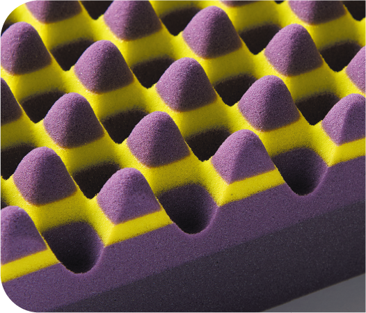 約1200個※の点からなる、表面の凹凸構造が体圧を分散し、ベース部が体をしっかり支えます。中間層に「ソムニフォーム」を採用し、クッション性が向上。寝返りもスムーズで、安定した寝心地に。