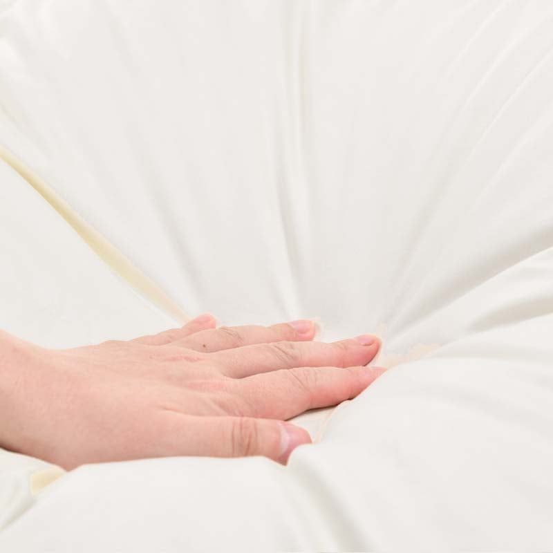 その上質なマザーグースのダウンを国内工場で加湿乾燥、選別。羽毛の持つ本来の保温力を極限まで引き出します。
