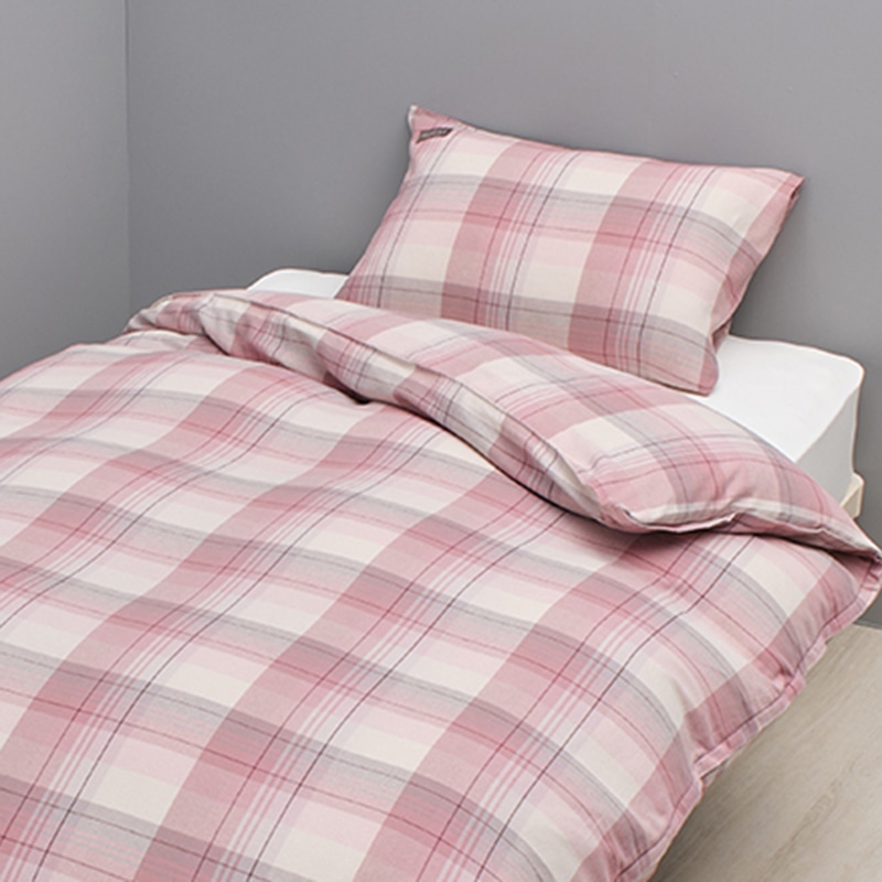 先染めにより色落ちがしにくく、深みのある美しい色合いを表現し、多色のチェックが寝室を彩ります。