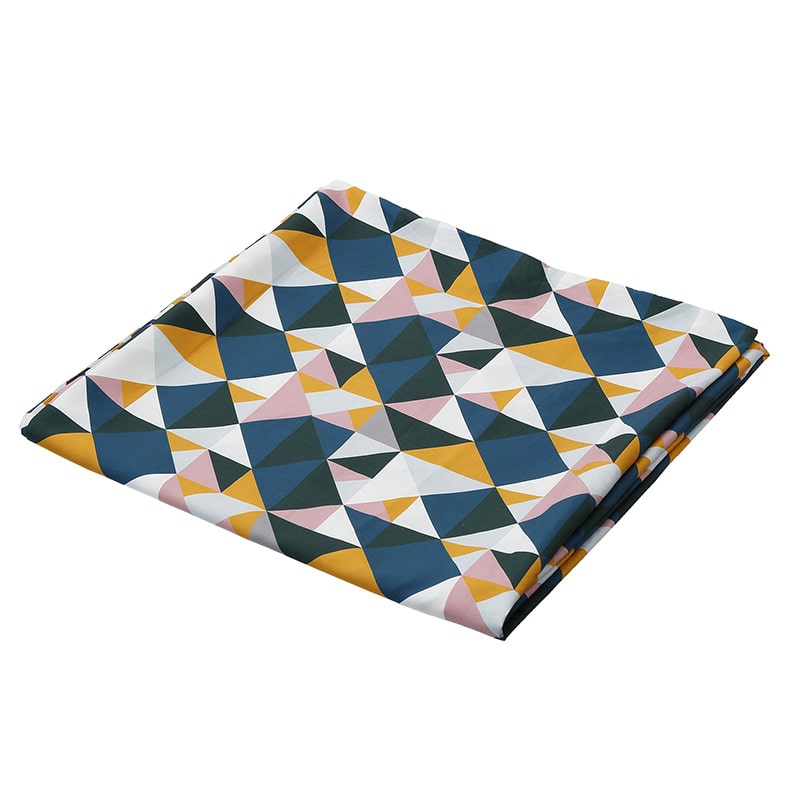 多色の三角形をグラフィカルにアレンジした遊び心のあるデザイン。
