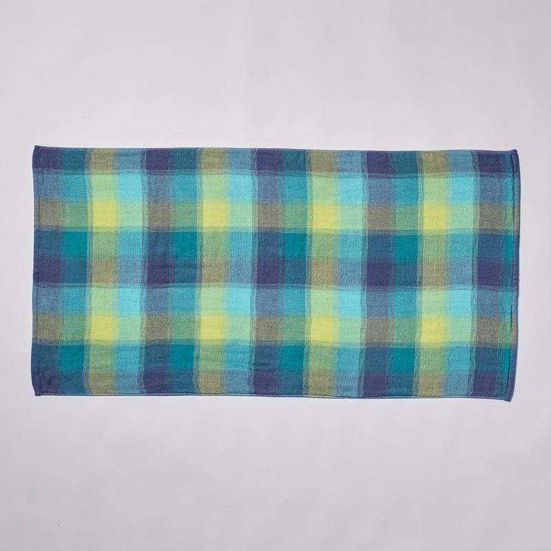 人の心や移ろう気持ち、交差する想いがゆっくりと流れる様をイメージしたチェック柄のタオル。