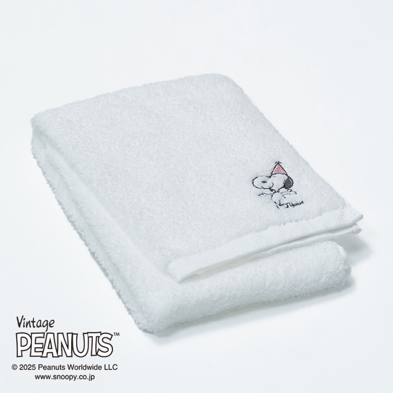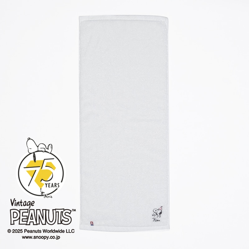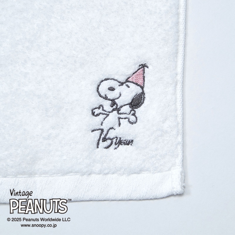 PEANUTSコミック誕生75周年を記念したアニバーサリーデザインの刺しゅう入り。【ふんわり軽いやわらかさの『かるわた』】