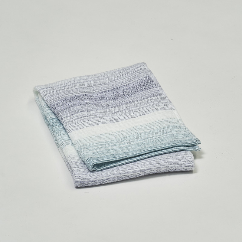 両面のガーゼにパイルを挟み込むインナーパイルで、表面のガーゼによるやさしい肌触りと内側のパイルが持つ高い吸水性とボリュームが特徴になります。