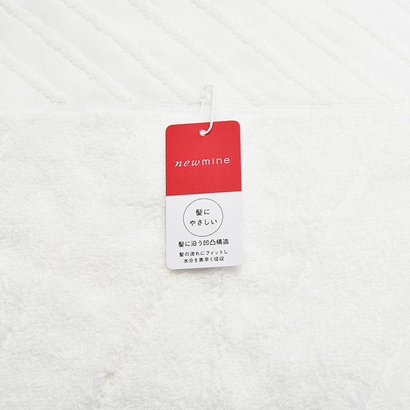 凹凸構造、吸水性に優れ、髪の水分を素早く吸収するタオルです。ヘアスタイルに合わせた適正なタオルの長さを考慮したサイズ展開。