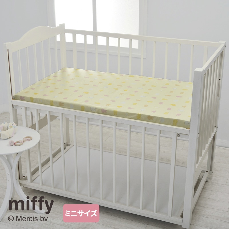 全周ゴム入りで、ふとんの付け外しがしやすい、ミニベッドサイズのベビー固わた敷きふとん用のシーツです。