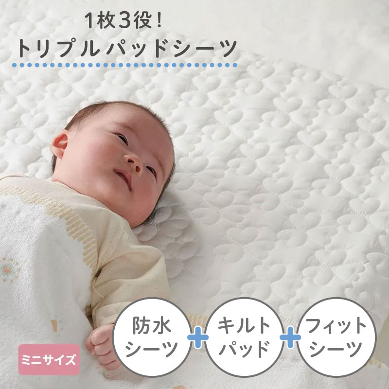 キルトパッド・防水シーツ・フィットシーツの3役を兼ね備えた便利なパッドシーツです。