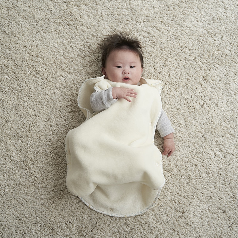 パイル糸に綿100%を使用した、綿毛布の生地を使ったスリーパーです。