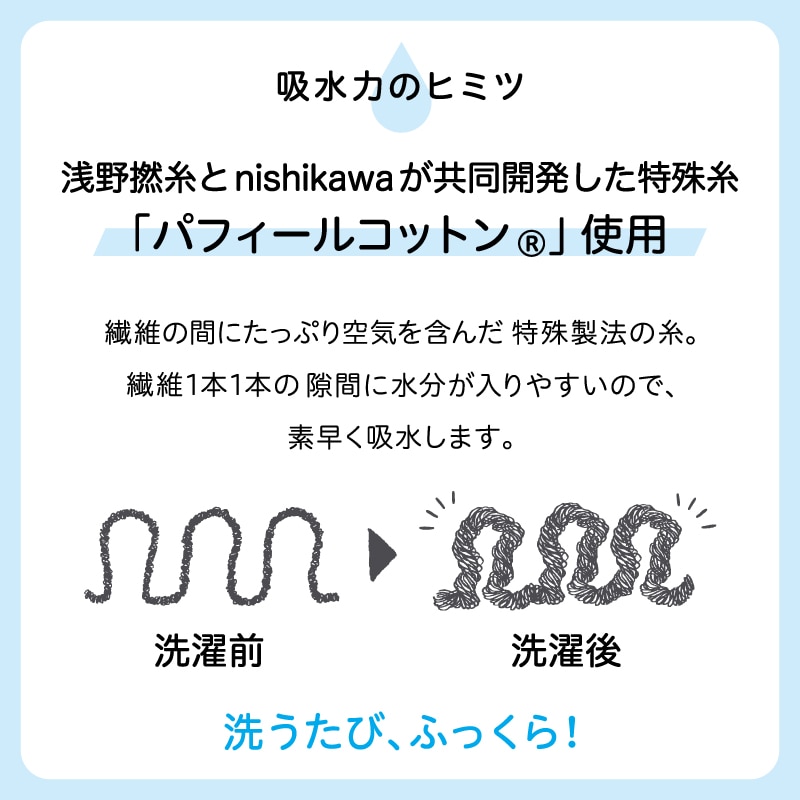 やわらかな肌ざわりのスマートバス。【浅野撚糸と共同開発した特殊糸「パフィールコットン」使用】