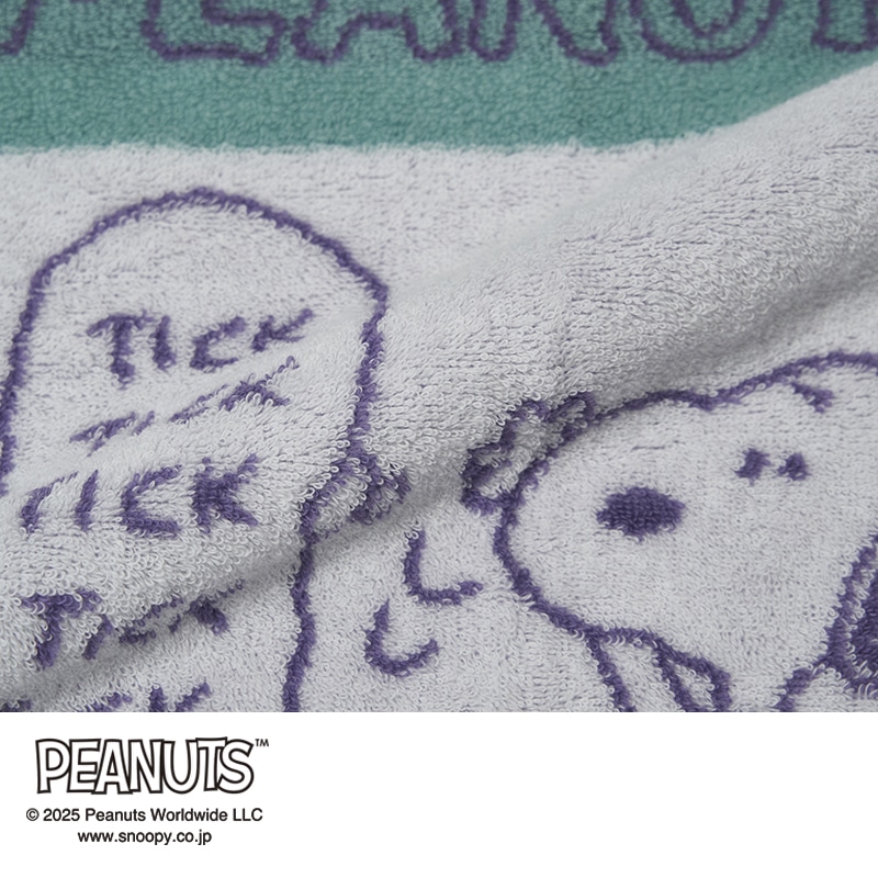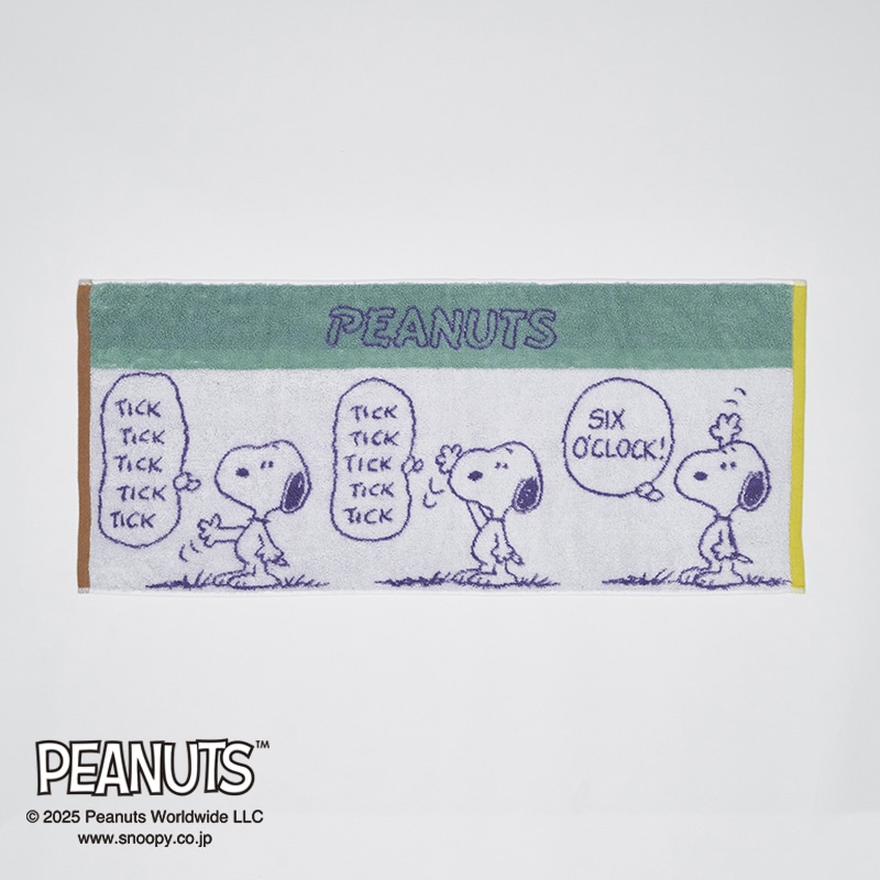 夕食の時間のスヌーピーを、ジャカード織で表現しました。【日本製(今治)】