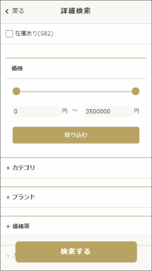 検索結果の画面では「価格帯」「カラー」「サイズ」等といった条件による絞り込みもできます。